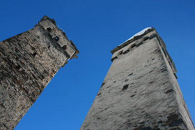 Woke up to a near-blizzard today, and sure enough, the electricity failed soon after that. Never mind, I thought - I have enough laptop and cellphone battery time to get a post ready for the blog anyway. But when it came time to connect to the internet, this vital link failed - couldn't get a connection straight onto the cellphone either, so something was up with the Magti (ISP) link. Frustration, depression, as I've pledged to post every day from Ushguli if at all possible. I called a friend in Tbilisi & asked him to post a note to my blog this evening from me, noting the problem; but now, at mid-afternoon, the sun has come out and our heroes, the electricity repair guys in Mulakhi village, have done their thing.